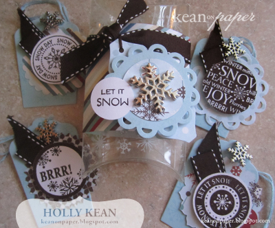 Then I stamped my sentiment on the and a few images where a little window would be cut out and put a score in the center. Then fold the patterned paper in half on the score mark and then while its still folded in half, fold the outside edge back toward the fold for the front and the back. Then I adhered the two together. When I had it together, I adhered the sledder with foam dots and corner rounded all four corners.